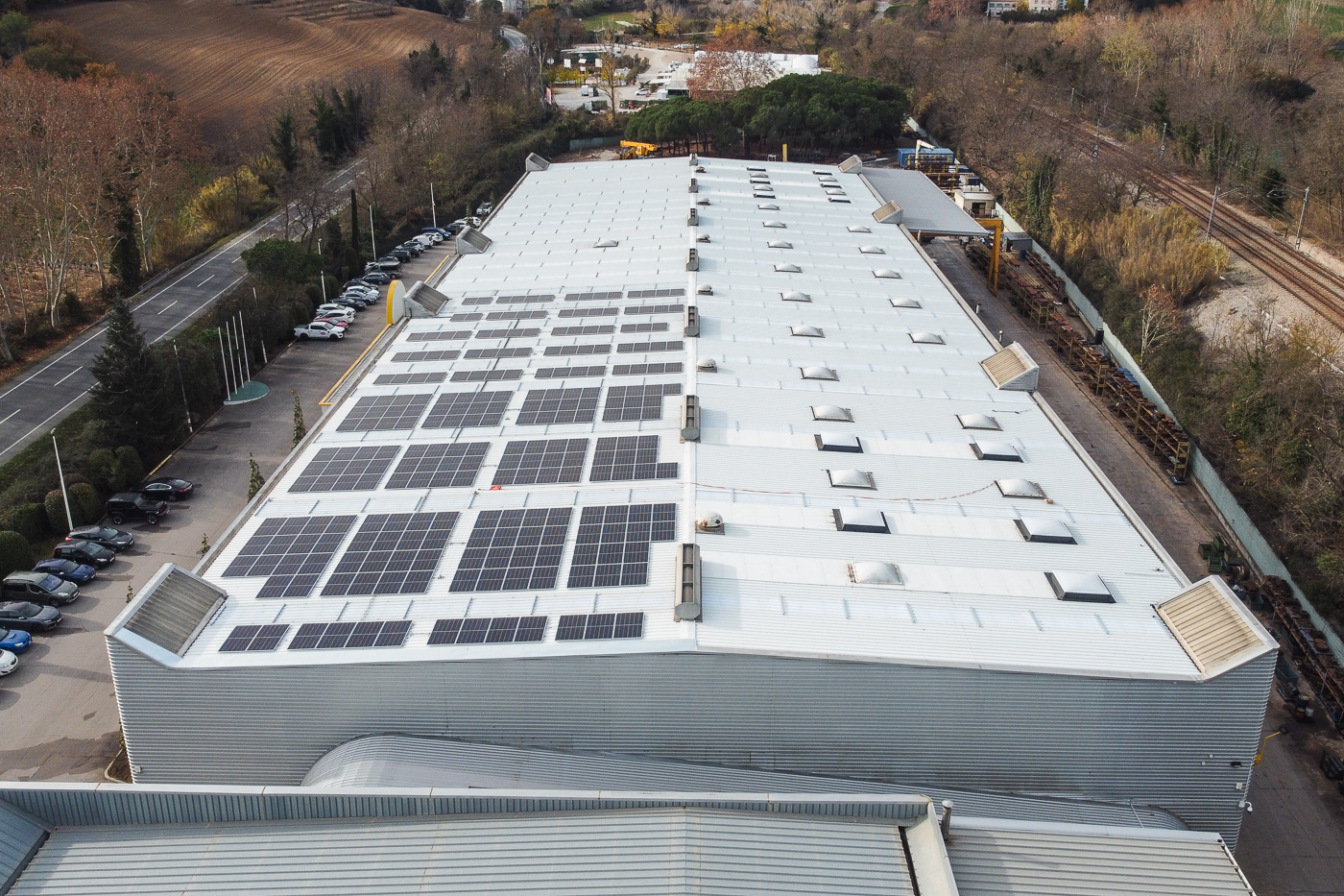 Instalación de 120 kWp de potencia, conectada en la red para autoconsumo energético. Produce unos 150.150 kWh/año, suponiendo una reducción aproximada de 21 Tn de CO2 al año.