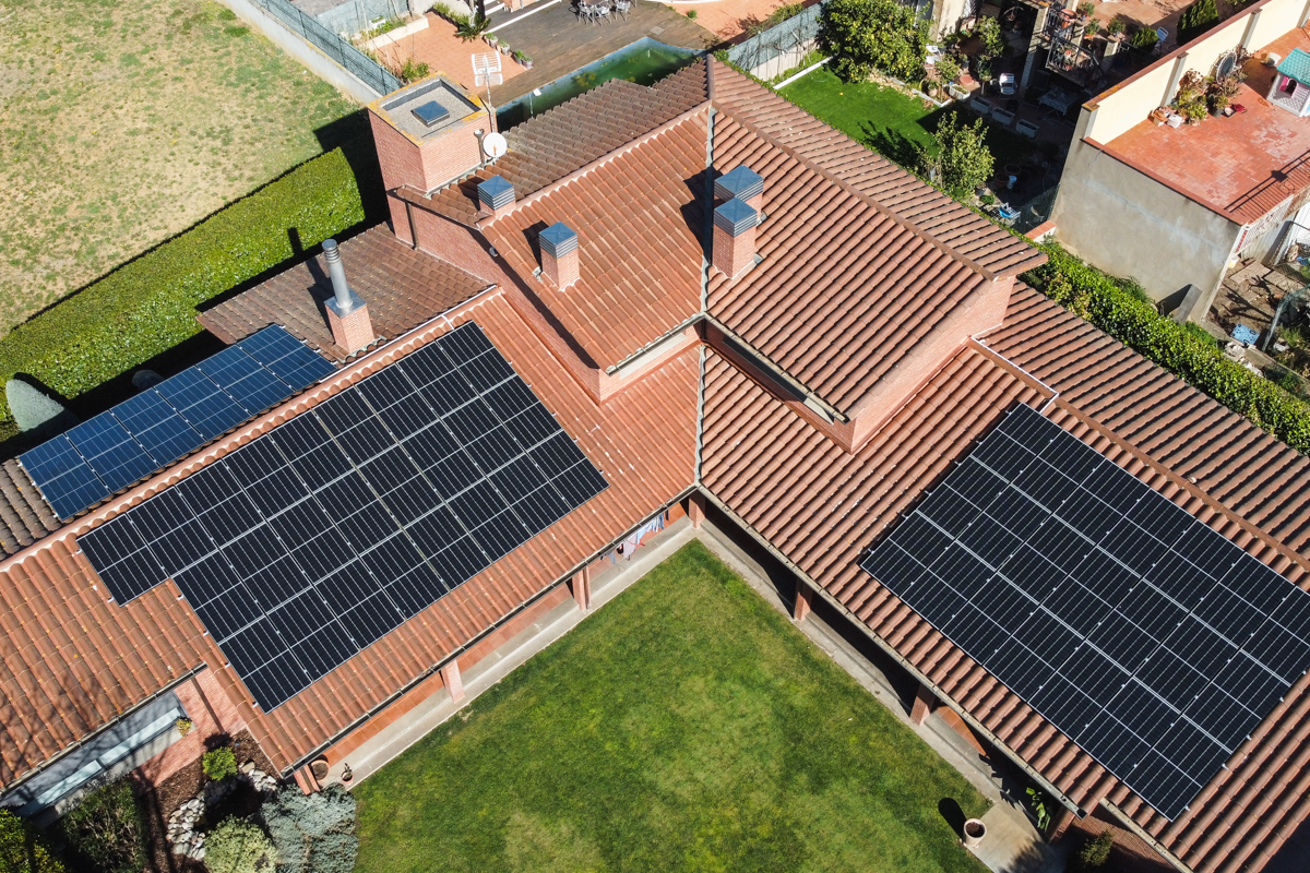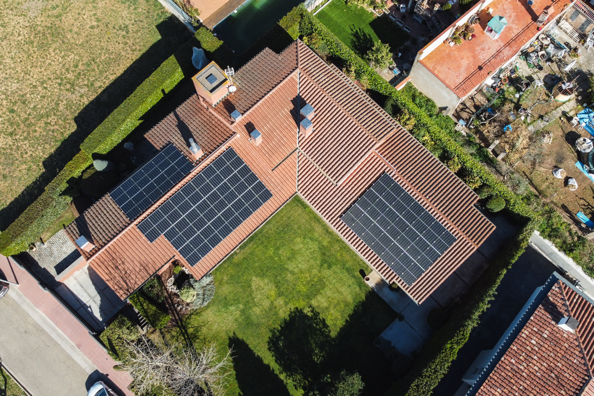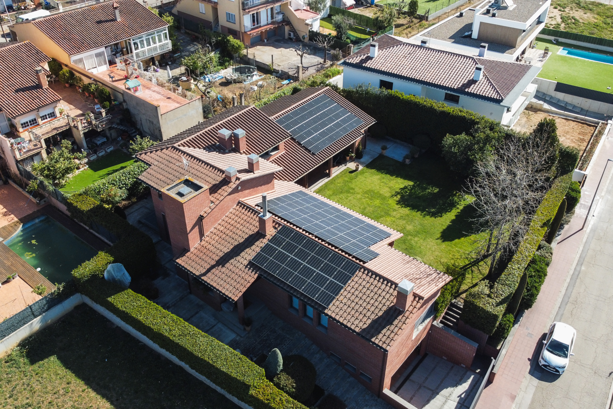 Instal·lació solar fotovoltaica per a autoconsum residencial instal·lada en un habitatge de la província de Girona. Potència instal·lada 22,04 kWp.